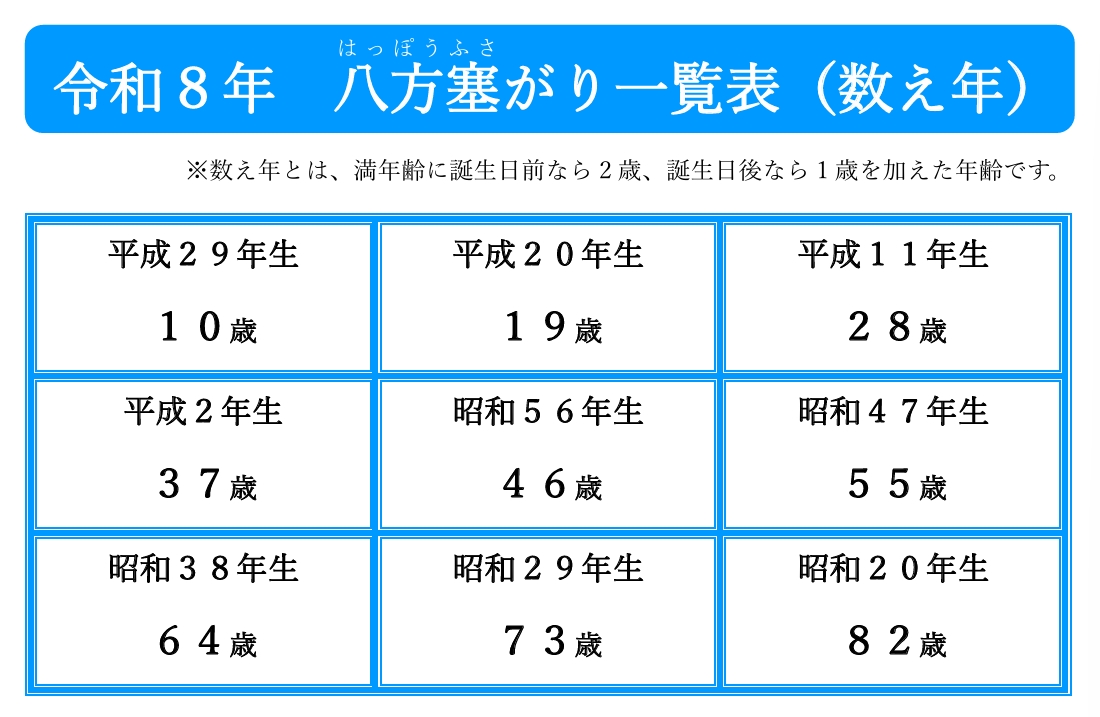 ※数え年とは、満年齢に誕生日前なら2歳、誕生日後なら1歳を加えた年齢です。
